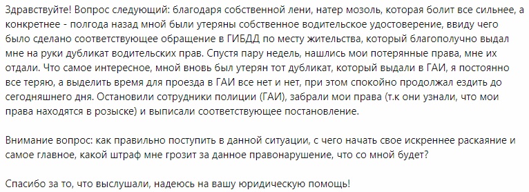 Если вы потеряли права или их украли, надо получить дубликат. Для этого необходимо записаться на прием в ГИБДД или подать документы в МФЦ, оплатить государственную пошлину (как за новые права), заполнить заявление о восстановлении удостоверения. Если причина утери - кража, напишите объяснительную с обстоятельствами произошедшего.