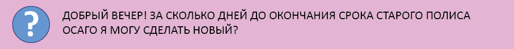 Ведущий юрист Европейской юридической службы Орест Мацала говорит, что новый страховой полис можно получить в любой момент, так как законом не запрещено иметь две страховки одновременно. Эксперт обращает внимание, что страховая компания вправе рассматривать заявление о выдаче полиса ОСАГО в течение 30 дней, в связи с чем возможен период, когда автомобиль нельзя будет использовать из-за неоформленной страховки, добавляет эксперт.