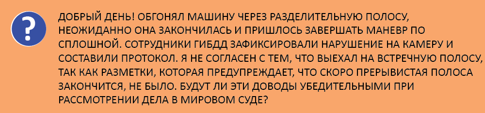 Ведущий юрист Европейской юридической службы Орест Мацала поясняет, что к спорной ситуации, связанной с выездом на встречную полосу, относится объезд препятствия через сплошную, когда им является неисправный или припаркованный автомобиль. Сотрудники ГИБДД выписывают протокол как за выезд на встречку, а в суде крайне сложно доказать, стояла ли там машина, мешающая движению.