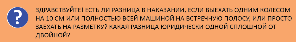 Юрист Европейской юридической службы Дмитрий Безделин отвечает, что наказание по ч. 4 ст. 12.15 КоАП наступит независимо от того, заехало ли на встречку лишь одно колесо машины или полностью. Вместе с тем, одна сплошная разделяет проезжую часть в опасных местах и запрещает выезжать на встречку, а двойная сплошная разделяет дорогу с двумя или тремя полосами при ширине полос более 3,75 м.