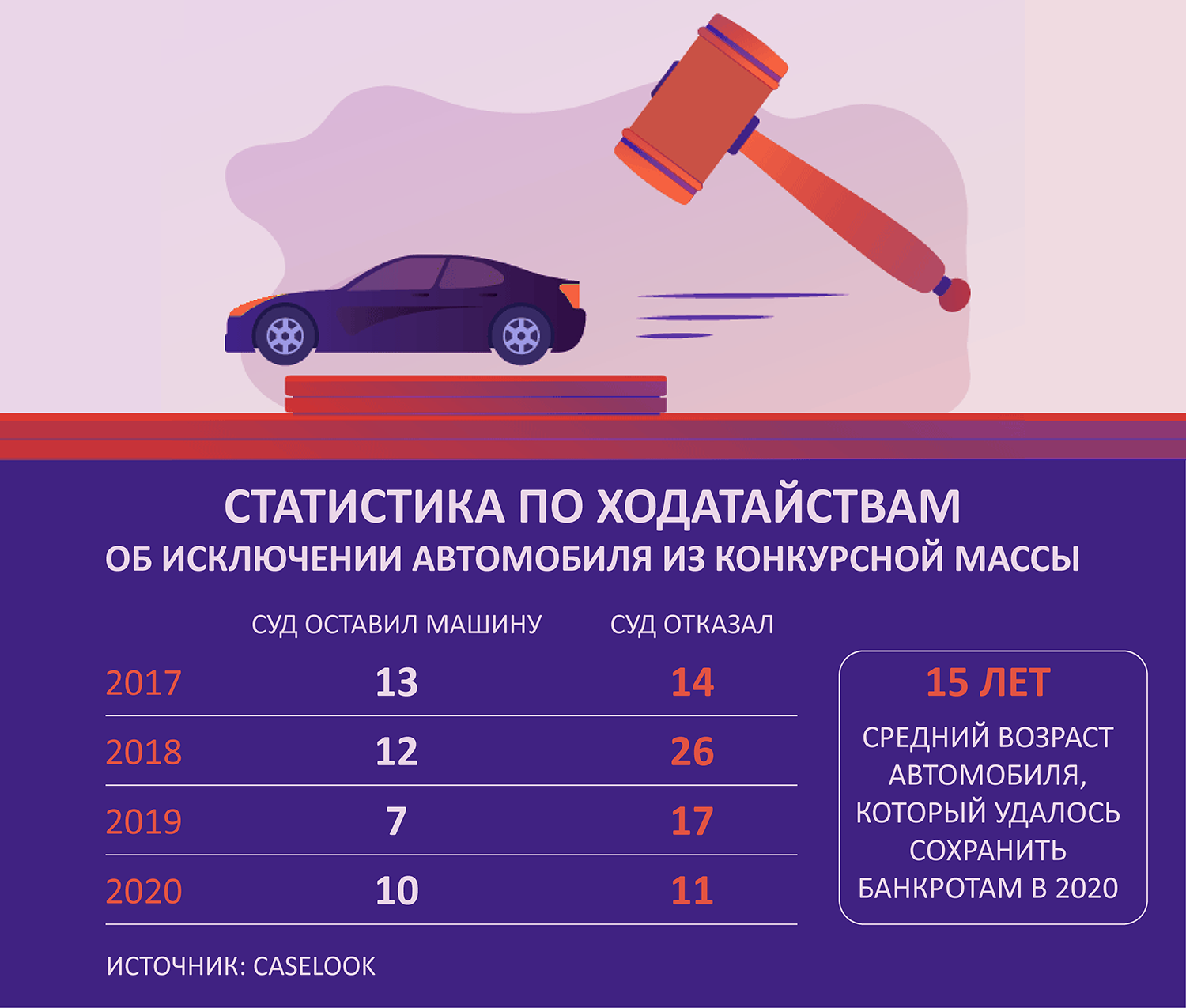 Изучение практики показало, что чаще суды все же забирают автомобиль у должников даже несмотря на то, что он нужен им для работы. Они аргументируют это необходимостью соблюдать «баланс интересов кредиторов и должника», а также тем, что деньги, полученные от продажи машины, составят существенный процент от конкурсной массы.