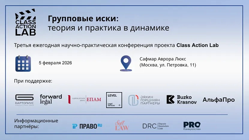 Конференция объединит представителей академического сообщества и практикующих юристов для обсуждения актуальных вопросов развития института групповых исков в России и связанных процессуальных механизмов.