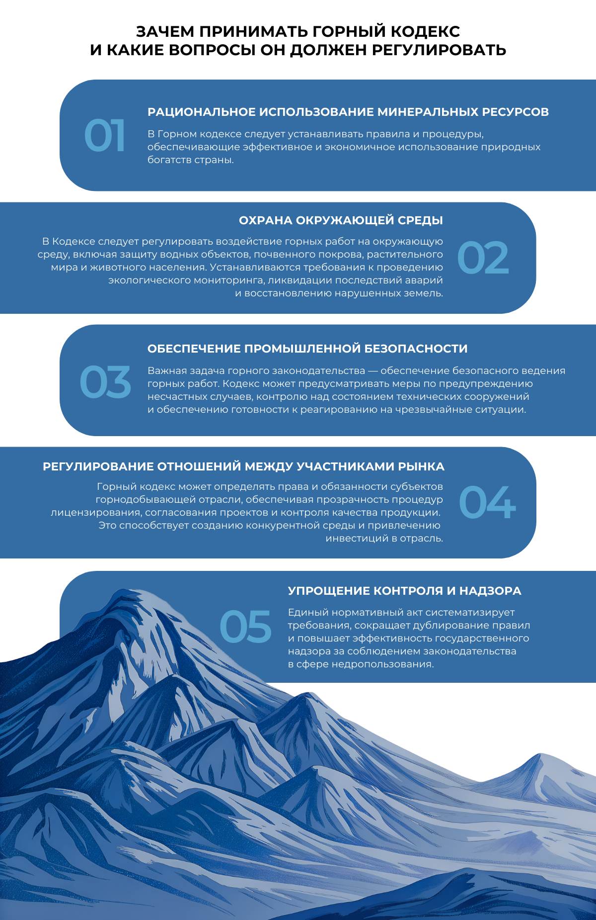 Эти принципы могут стать основой для кодификации и гарантировать, что Горный кодекс станет не просто еще одним документом, а реальным инструментом развития отрасли.