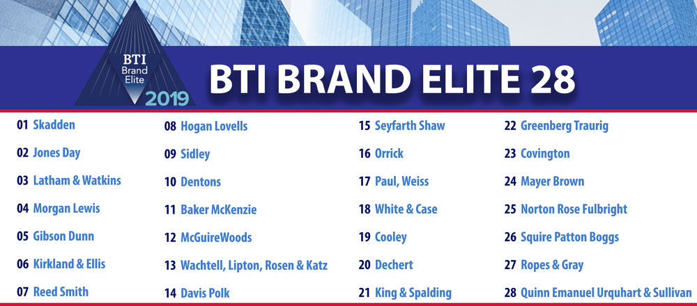 Еще шесть компаний вернулись в список Brand Elite – это Seyfarth Shaw, Orrick, King & Spalding, Covington, Squire Patton Boggs, Ropes & Gray.