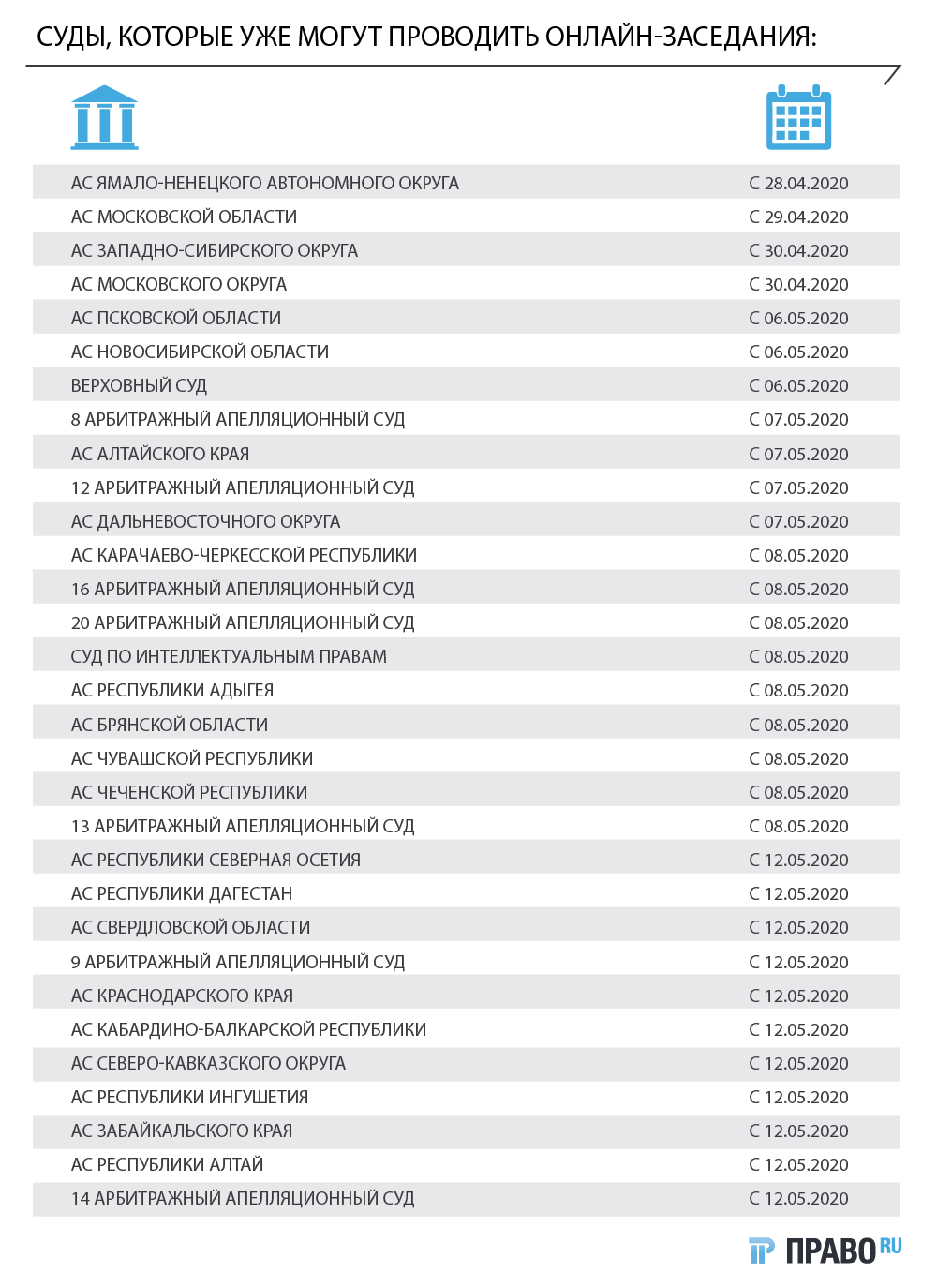 В конце апреля президиумы Верховного суда и Совета судей изменили свое постановление о порядке работы судов во время пандемии. Обновленный документ рекомендует судам при наличии технической возможности и с учётом мнений участников судопроизводства проводить заседания с использованием системы видео-конференц-связи.