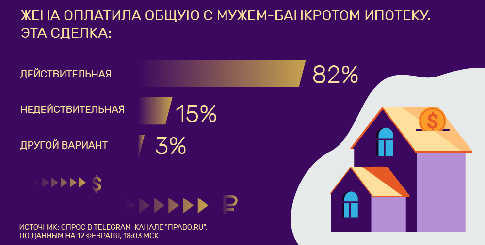 «Созаемщик-жена погасила долг. Заботилась о своем интересе», – отметил один из подписчиков и добавил, что на конкурсную массу такая сделка не повлияла. С этим не согласилась другая читательница. Она увидела основания для оспаривания, если нет решения о разделе совместно нажитого имущества или брачного договора. «По логике половина денежных средств должна была быть передана управляющему, и тот должен был осуществить расчеты с кредиторами», – считает еще один участник обсуждения.