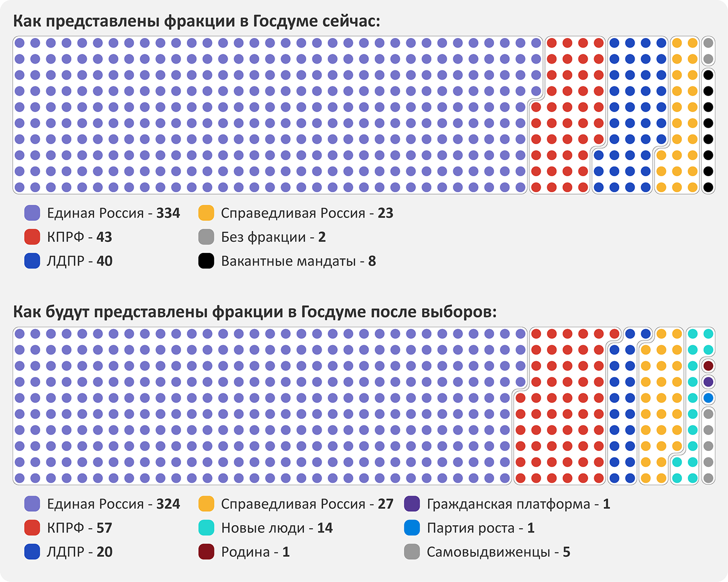 У «Единой России» сохранится конституционное большинство. К трем партиям системной оппозиции, у которых существенно изменится представительство, добавится думский новичок под названием «Новые люди».