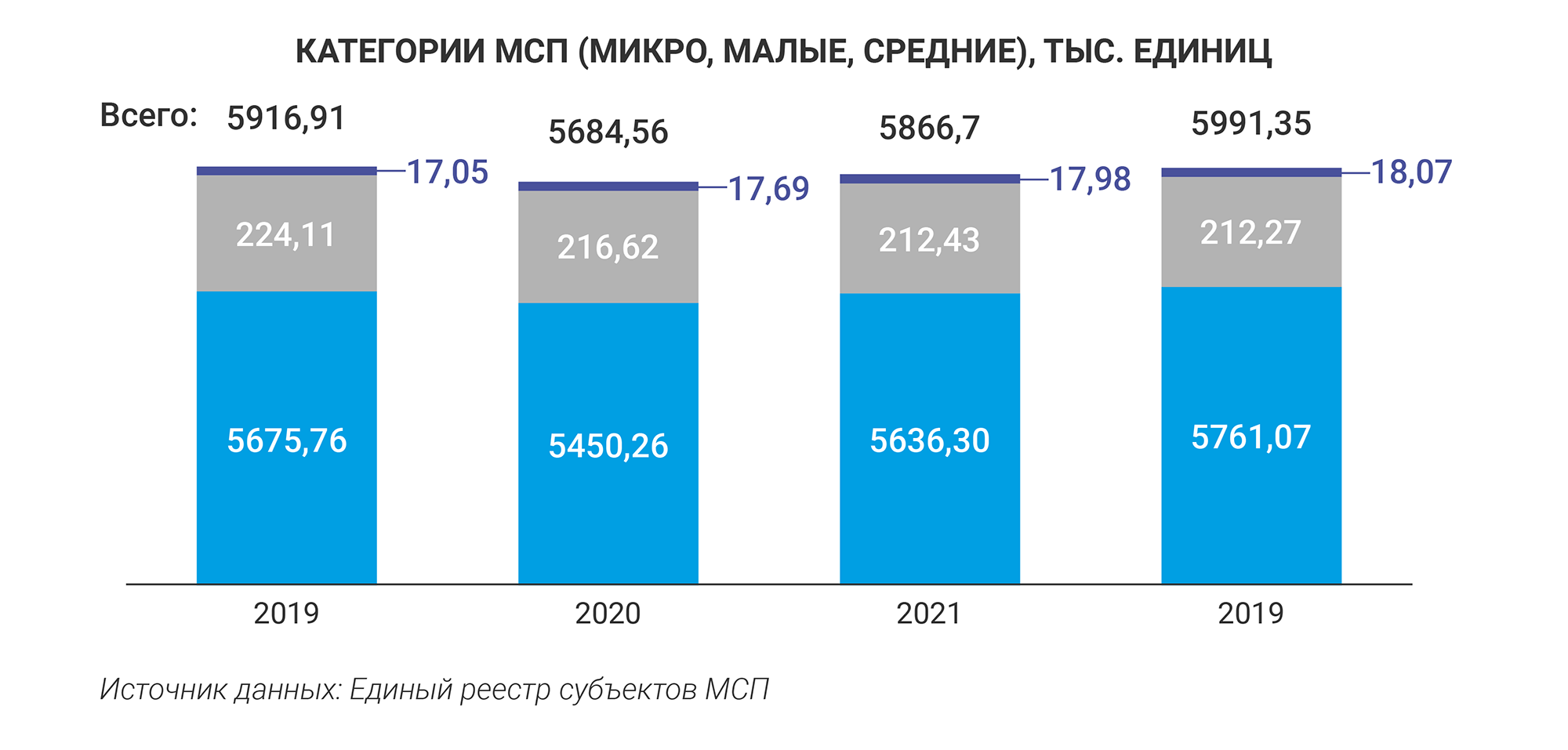 Прирост к 2019 году составил почти 6%. Похожую динамику Минэкономразвития заметило и в категории микробизнеса, а вот малых компаний стало меньше.