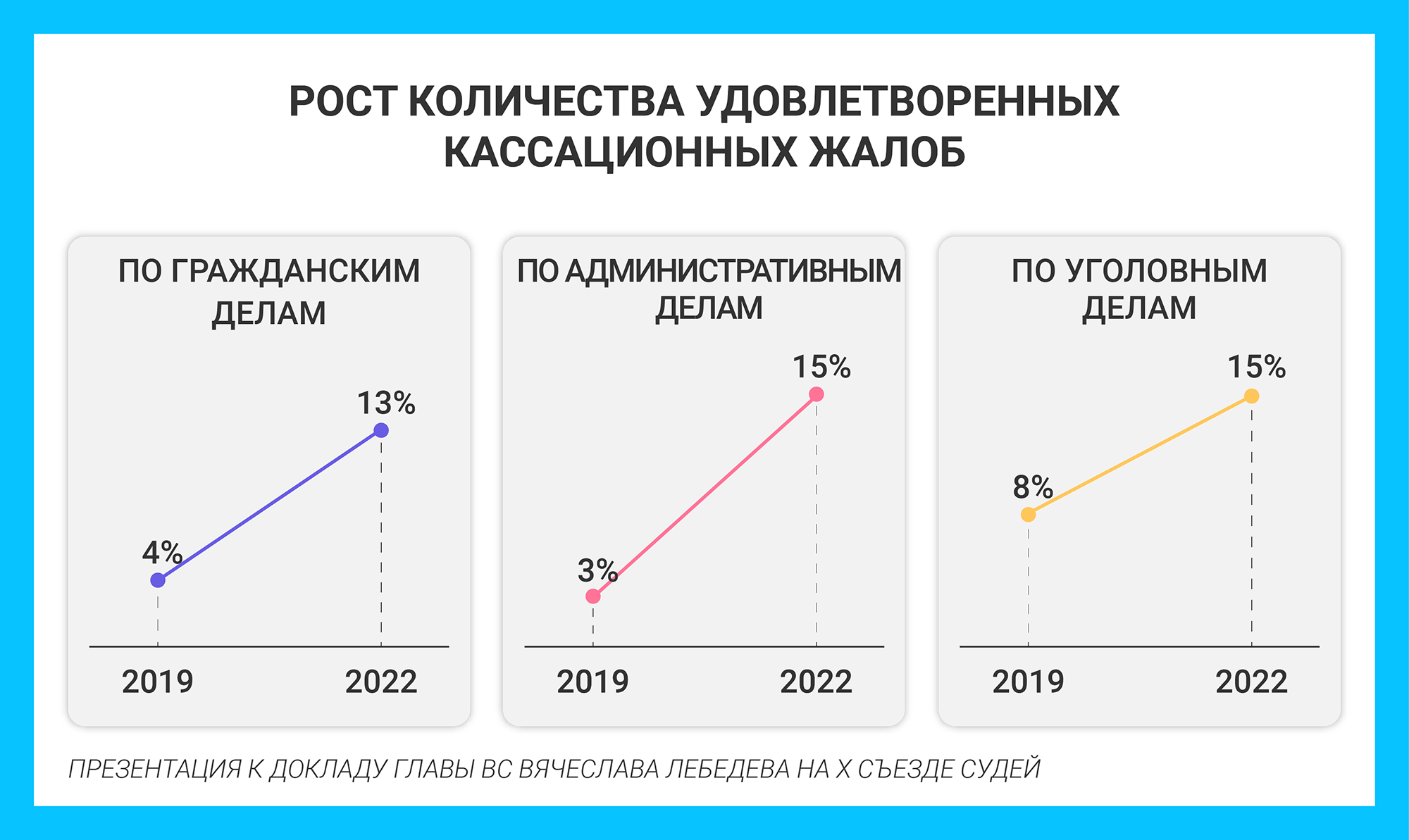 Пока перерыв, поделимся статистикой из презентации к докладу главы ВС Вячеслава Лебедева. Здесь проиллюстрированы изменения, которые произошли с началом работы Кассационных СОЮ (работают с 1 октября 2019 года).