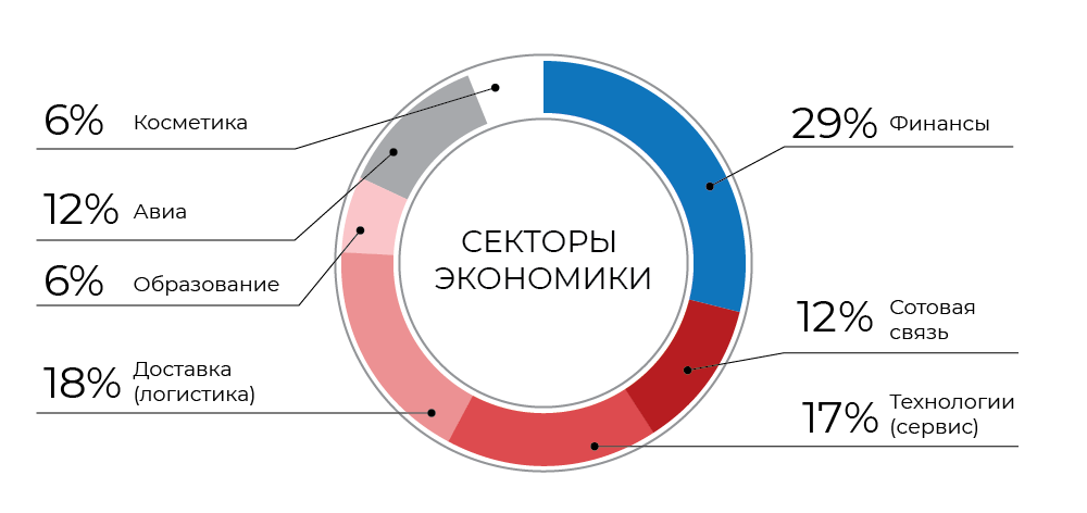 Сфера деятельности таких корпораций-ответчиков приходилась на семь секторов экономики: