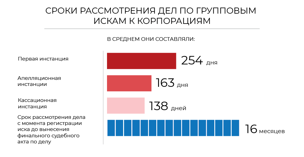 Важны и сроки рассмотрения дел по групповым искам к корпорациям, в среднем они составляли: