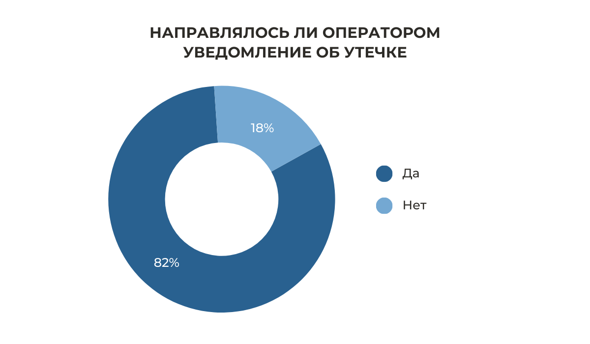 Оператор обязан уведомить уполномоченный орган об утечке (ч. 3.1 ст. 21 закона «О персональных данных»). С 30 мая вводится новый состав административного правонарушения — за отсутствие или несвоевременное уведомление уполномоченного органа об утечке. Хотя, судя по мировому тренду, операторы часто не уведомляют уполномоченные органы об утечках, текущая российская судебная практика показывает, что 82% операторов уведомления направляли.