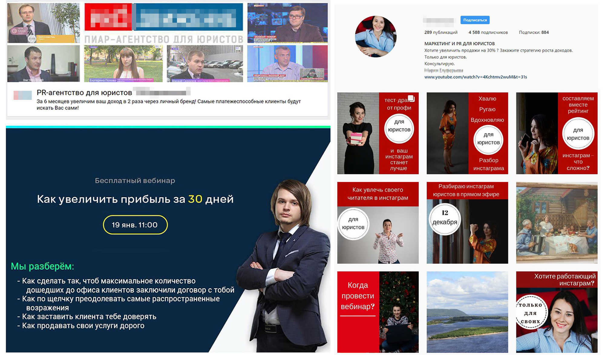 Грамотное ведение аккаунта в Facebook или Instagram поможет юристу привлечь новых клиентов. Но одна ошибка в виртуальном пространстве может обойтись очень дорого. Не стоит постить картинки с нецензурными анекдотами и выкладывать фотографии, где вы рекламируете китайское нижнее белье. От политических тем тоже лучше держаться подальше. Не все потенциальные клиенты могут разделять ваши взгляды, даже если они кажутся вам самыми верными.