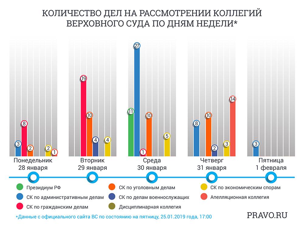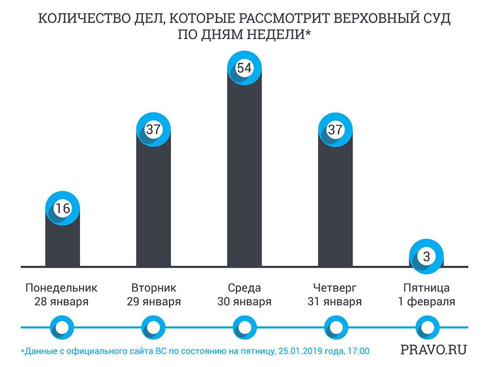 Президиум рассмотрит 11 дел, а коллегия под делам военнослужащих – шесть.