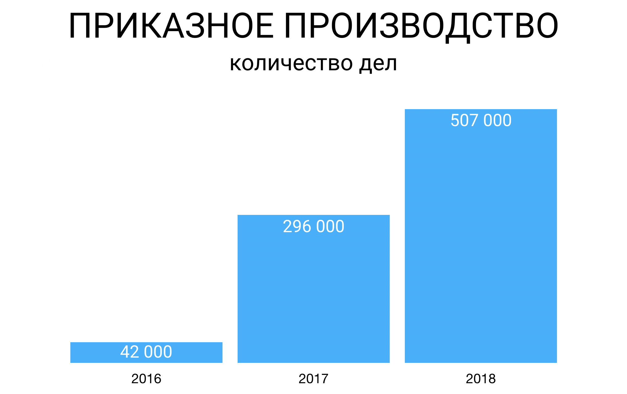 Количество рассмотренных «приказных» дел за один год увеличилось на треть, до 507 000 дел (+33% к показателю предыдущего года). А с 2016 года, когда институт приказного производства впервые появился в Арбитражно-процессуальном кодексе, их количество выросло в 12 раз – в дебютный год было выдано 42 000 приказов.