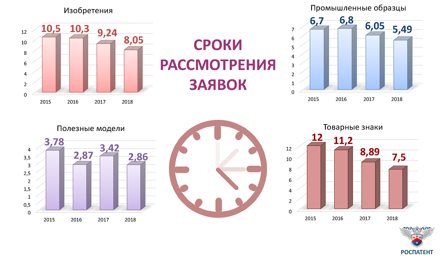 Сейчас срок госрегистрации промышленного образца Роспатентом составляет 20 месяцев и 2 недели, что не способствует обеспечению прав дизайнеров в условиях быстротечно меняющейся моды. Это именно максимальный срок, на который может растянуться выдача охранных документов, если заявка оформлена некорректно или заявитель вовремя не уплатил пошлины либо затягивает с ответами на запросы экспертов. На практике, если заявка качественно оформлена, срок ее рассмотрения на промышленный образец в среднем составляет около шести месяцев.