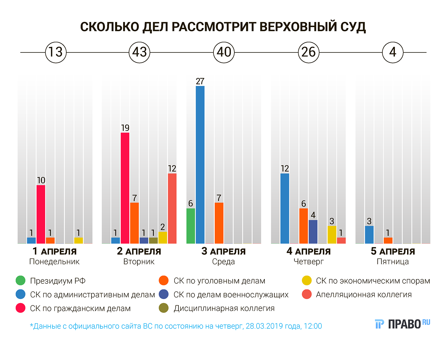 Президиум ВС запланировал шесть дел, которые будет рассматривать в среду, 3 апреля.
