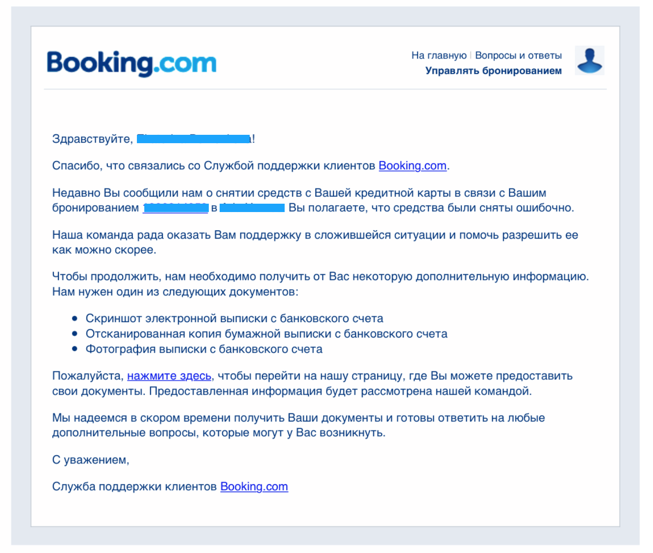 Один из самых популярных сервисов – Booking.com. В феврале этого года Мария Школьникова* забронировала на две ночи отель в Стамбуле. Полную предоплату списали 8 мая, а потом 14 мая – в день самого заезда в отель. Девушка написала в службу поддержки сервиса и отеля, от Booking.com получила следующее указание: