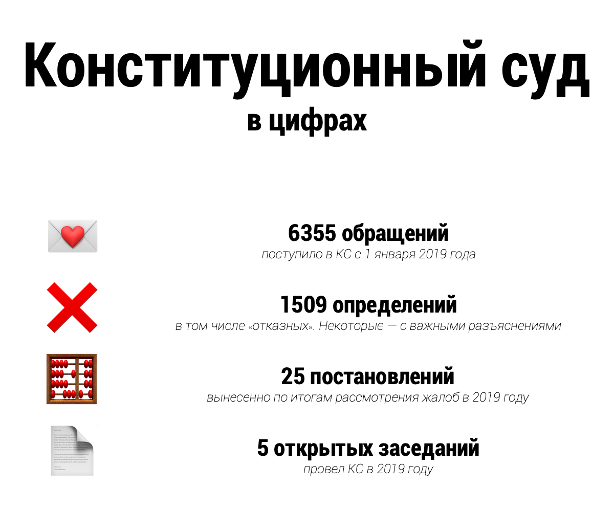 В 2019 Конституционный суд разъяснил, как посчитать судебные расходы на банкротные и административные споры, когда можно заплатить меньше налогов и из каких денег нельзя взыскать долги по алиментам. Кроме того, суд разъяснил ряд положений, важных для уголовного процесса, и рассказал, когда организаторов митингов нельзя привлечь к ответственности.