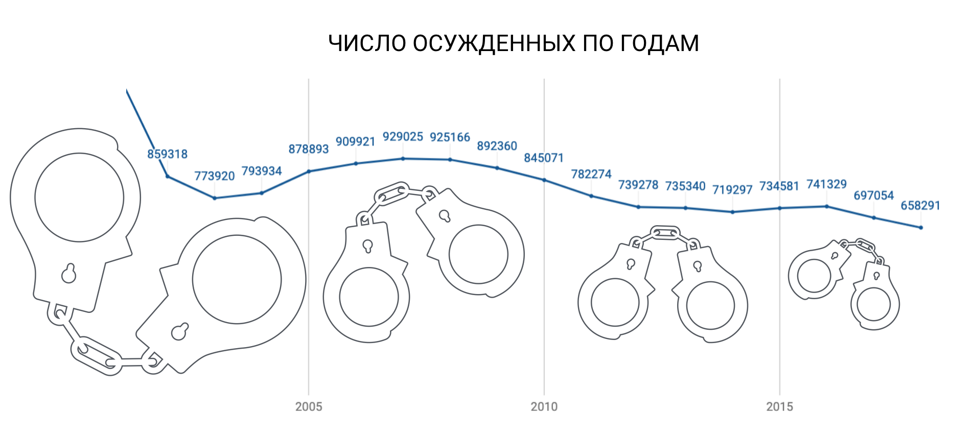Суддеп представил показатели судимости в России за 2018 год. По большей части показателей «отличить» 2018 год от 2017 года практически невозможно: портрет преступника остается тем же, в колонии за взятки отправляется одинаковое число нарушителей, а «наркотические» статьи остаются самими «популярными». Но есть исключения.