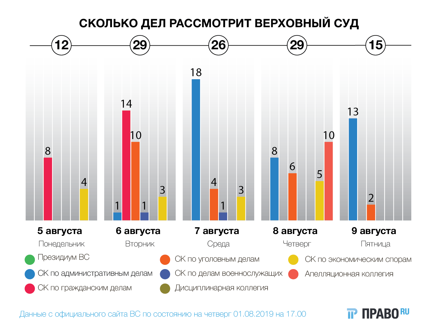 В апелляционной коллегии рассмотрят 10 дел. В Дисциплинарной коллегии и в Президиуме ВС споров не назначено.