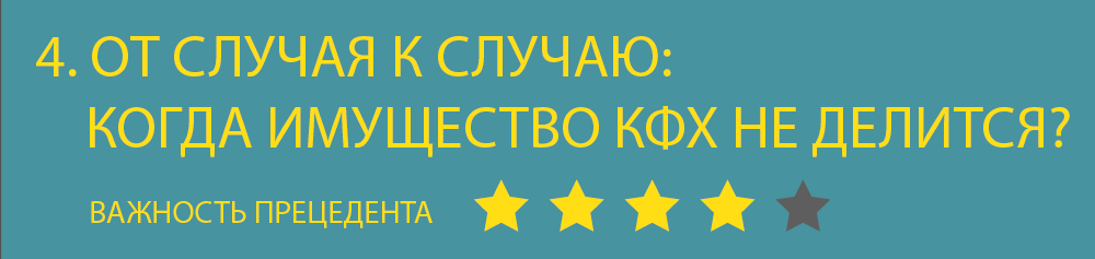 Суть конфликта: Супругом Н. Тихой в период брака на КФХ приобретено имущество и земельный участок. После расторжения брака Н. Тихая обратилась в суд с требованием о разделе совместно нажитого имущества. А. Тихой, просил исключить указанное имущество из состава общего имуществ супругов, поскольку оно принадлежит КФХ.