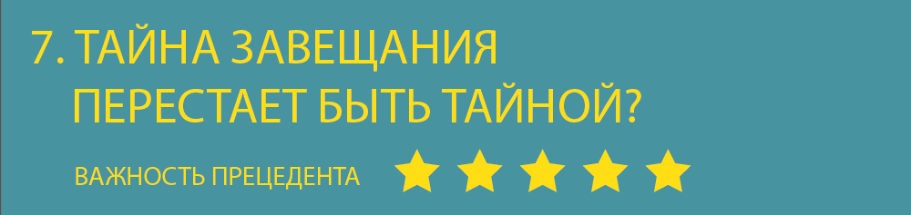 Вместе с тем, в судебной практике встречается подход, в соответствие с которым, при нарушении тайны завещания только завещатель вправе защищать свои права, предусмотренные ст. 1123 ГК РФ, поскольку действующее гражданское законодательство защищает тайну завещания, если только сам наследодатель заинтересован в сохранении этой тайны.