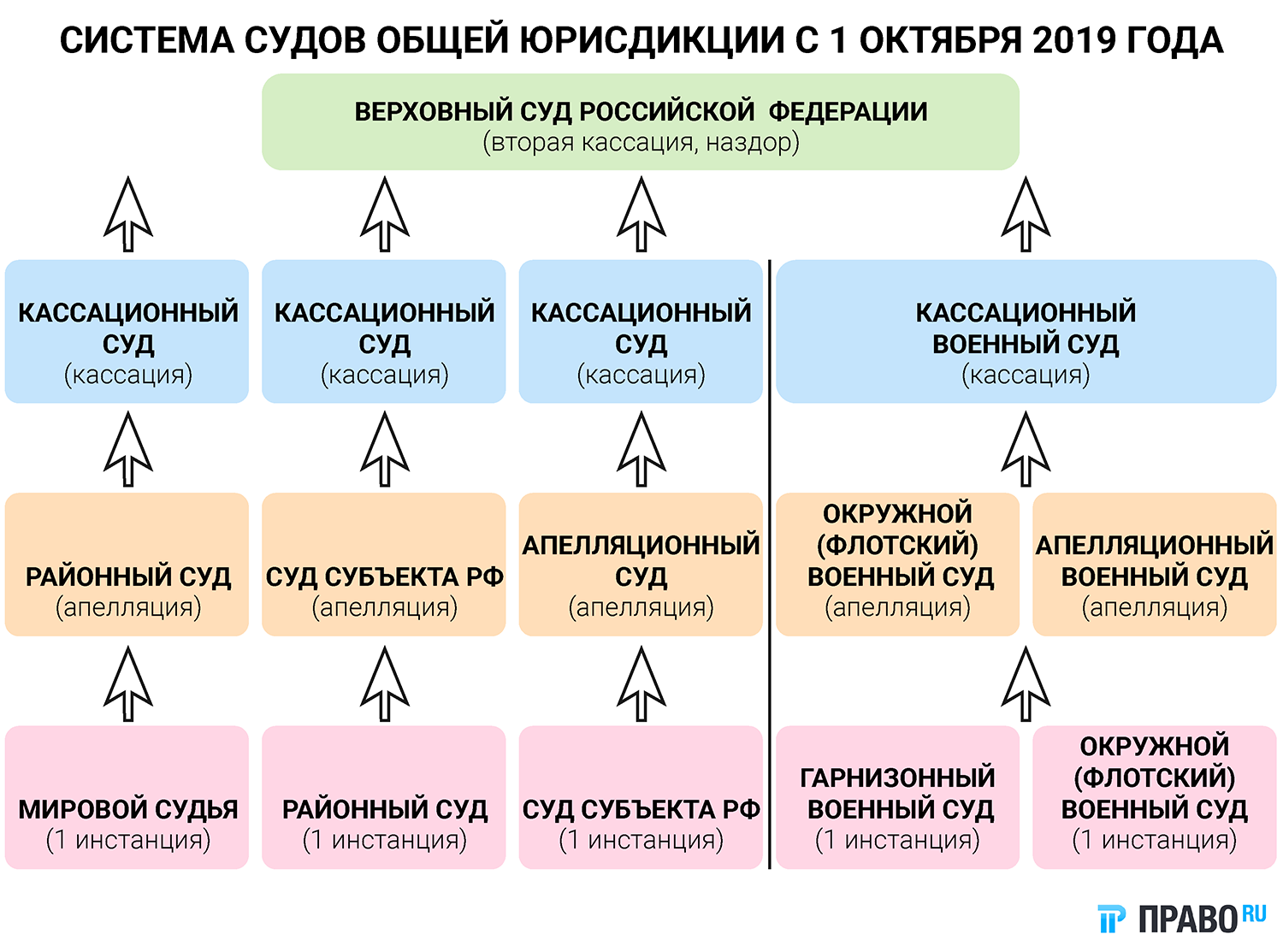 С 1 октября 2019 года вступают в силу положения законов, реформирующих систему судов общей юрисдикции. Это должно произойти за счет выделения судебных инстанций в отдельные экстерриториальные суды. Начнут работу пять апелляционных и девять кассационных судов, а также один апелляционный военный суд и один кассационный военный суд. Каждый из новых судов будет действовать в пределах судебного округа, включающего несколько регионов.