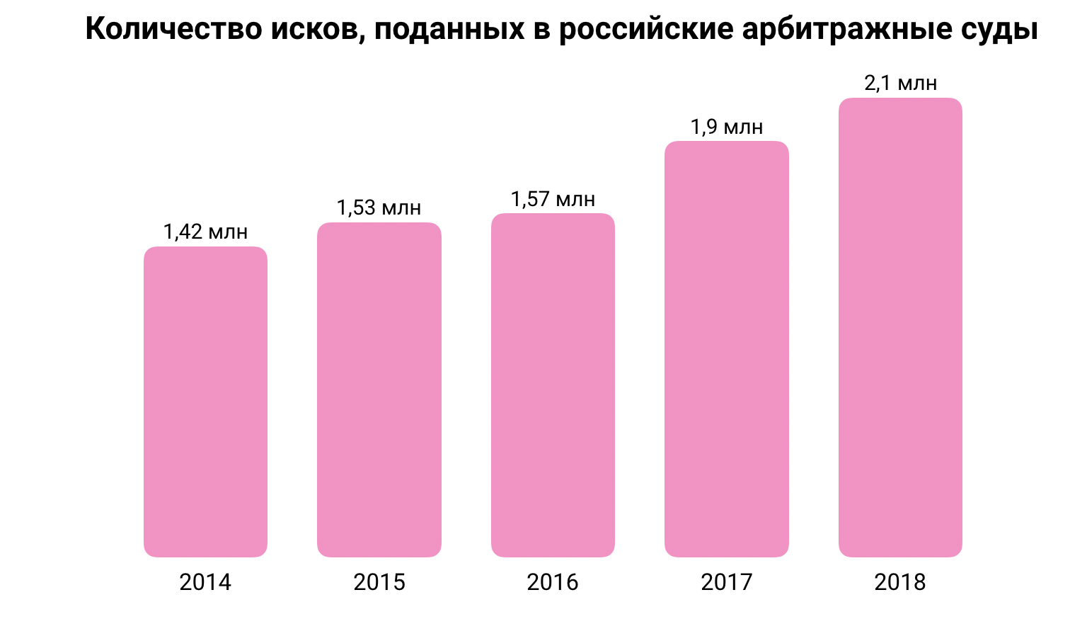 Количество экономических споров и дел в арбитражных судах России ежегодно увеличивается. Так, в 2017 году в суды первой инстанции поступило 1,952 млн исковых заявлений, а в 2018 – уже 2,1 млн. И это — тенденция.