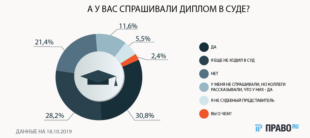 Юристам в суде теперь нужно иметь при себе диплом или хотя бы его нотариально заверенную копию. Но даже через три недели после вступления в силу этого нововведения некоторые представители о нём не знают. Особо забывчивые юристы из ситуации выходят по-разному: кто-то показывает фото из соцсетей со своего выпускного, другие просят родственников прислать скан документа в мессенджере. Злоупотребляют и суды, которые требуют адвокатов показывать «корочки». Публикуем результаты опроса, в котором спросили у читателей, как у них проверяли наличие юробразования.
