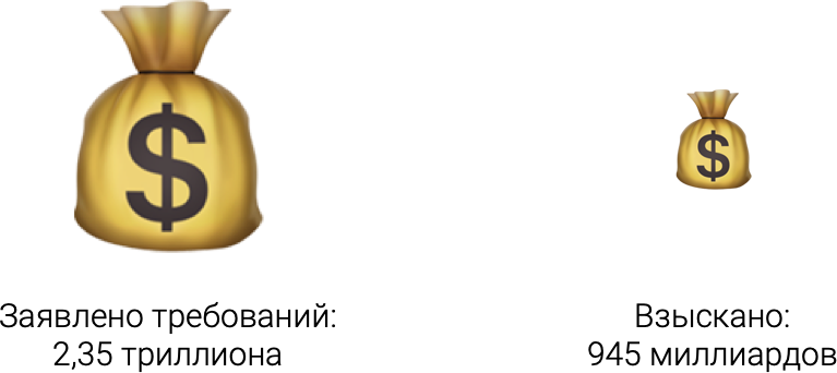 С каждой 1000 руб. признанных судом долгов взыскать с должников-банкротов получается лишь 68 руб.