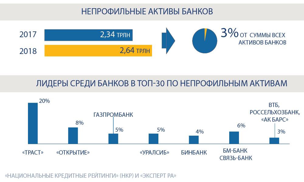 Так, летом прошлого года на базе банка «Траст» Центробанк создал специализированный Банк непрофильных активов (БНА), который управляет активами санируемых кредитных организаций, чтобы повысить их рыночную стоимость, а затем продать по максимальной цене. Банк «Открытие», писал РБК, реализует непрофильные активы через публичные площадки по продаже недвижимости: «Авито», CIAN и другие сайты-агрегаторы. Сбербанк продаёт залоговое имущество через специальный «Портал DA», который ориентирован в большей степени на профессиональных инвесторов, но частные лица также могут приобрести недвижимость через него. А ВТБ планирует запустить со следующего года маркетплейс, через который будут искать покупателей для непрофильных активов – изъятых у должников квартир и автомобилей.