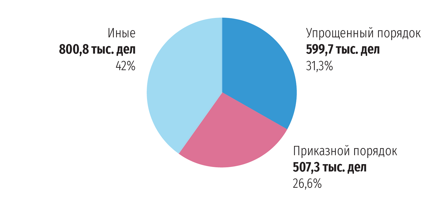 При этом ВБ не обнаружил в России и других существующих процедур. Например, упрощённых процедур и возможности лиц самостоятельно представлять свои интересы при рассмотрении мелких споров. Это нельзя объяснить ничем, кроме как недостаточной информированностью экспертов ВБ, считают в ЦРСП. Так, практика использования упрощённого и приказного порядка рассмотрения мелких требований в арбитражных судах (гл. 29 и 29.1 АПК РФ) давно устоялась, в 2018 году арбитражные суды субъектов рассмотрели с использованием облегчённых процедур более половины от всего объёма дел.