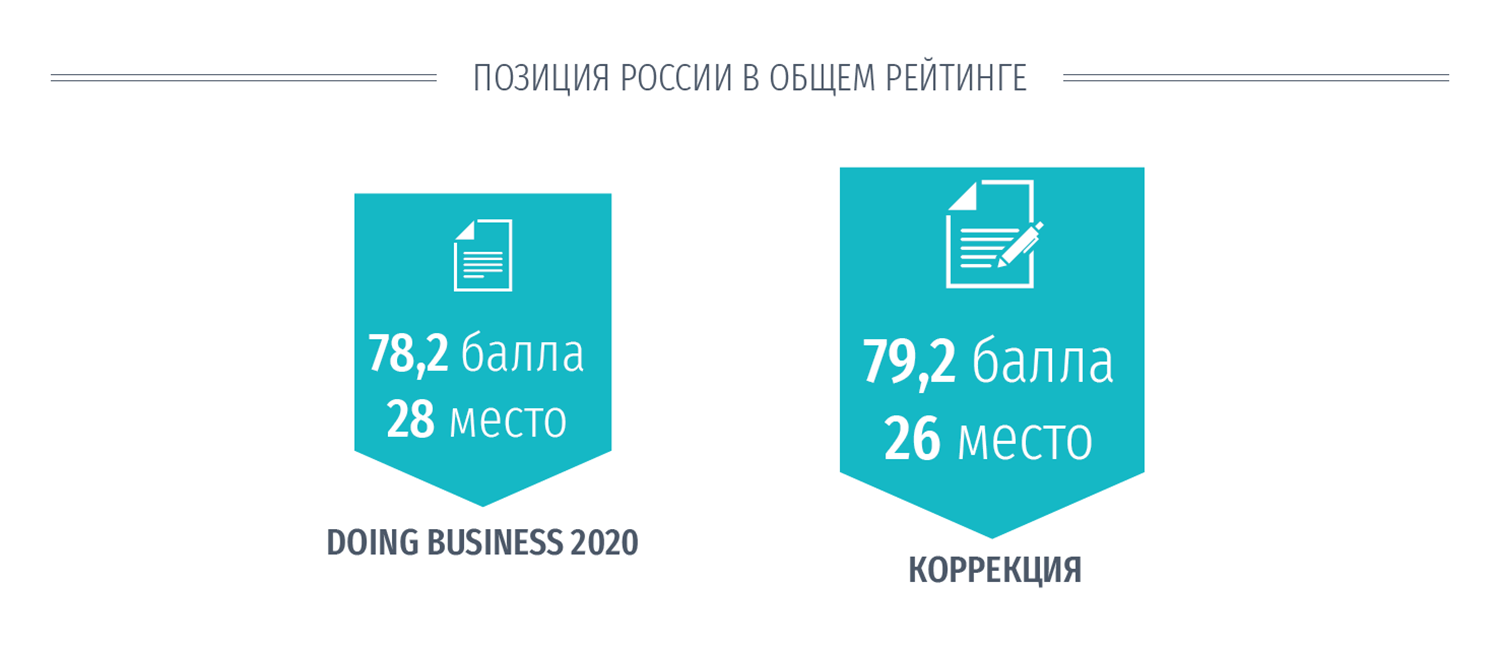 В целом при использовании корректных данных Россия должна находиться на третьем месте по показателю обеспечения исполнения договоров с результатом 82,3 балла, считают эксперты.