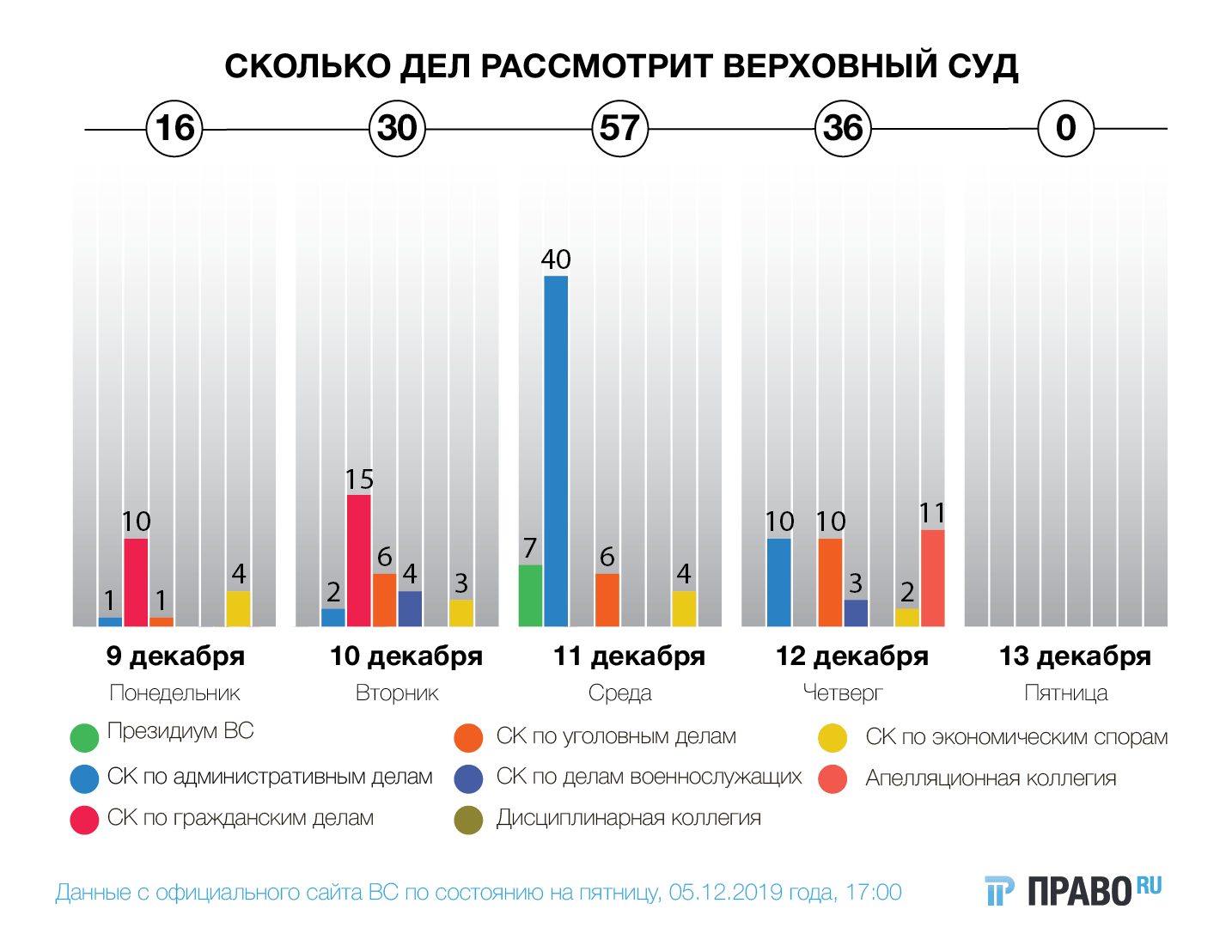 Президиум ВС рассмотрит семь жалоб. Административная коллегия – 54 дела: