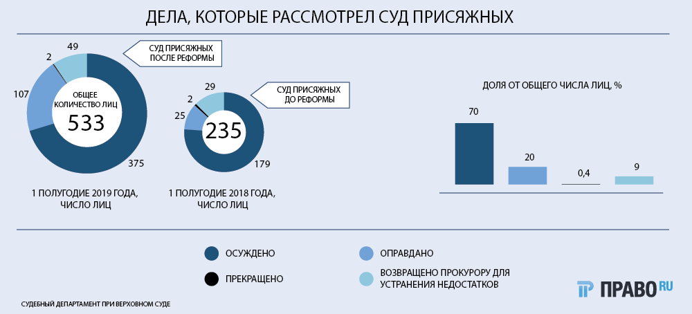 Правда, как до реформы, так и после присяжные чаще всего продолжили рассматривать дела об убийствах (ч. 1 ст. 105 УК) или причинении тяжкого вреда здоровью, которое привело к смерти потерпевшего (ч. 4 ст. 111 УК). Это связано с одной главной причиной. Такие преступления совершаются чаще других, объясняет Дмитрий Данилов из АБ Феоктистов и партнеры .