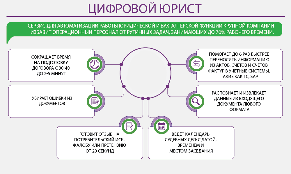 Второй продукт – «Судебная платформа» – обрабатывает типовые входящие документы и на их основании автоматически формирует ответы на запросы госорганов, претензию или судебный иск. Систему можно настроить под различные виды бумаг без привлечения IT-специалистов. Юрист может сфотографировать или загрузить документ в любом цифровом формате: картинкой, текстом или в PDF. Системе понадобится 20 секунд, чтобы распознать его и подготовить отзыв.