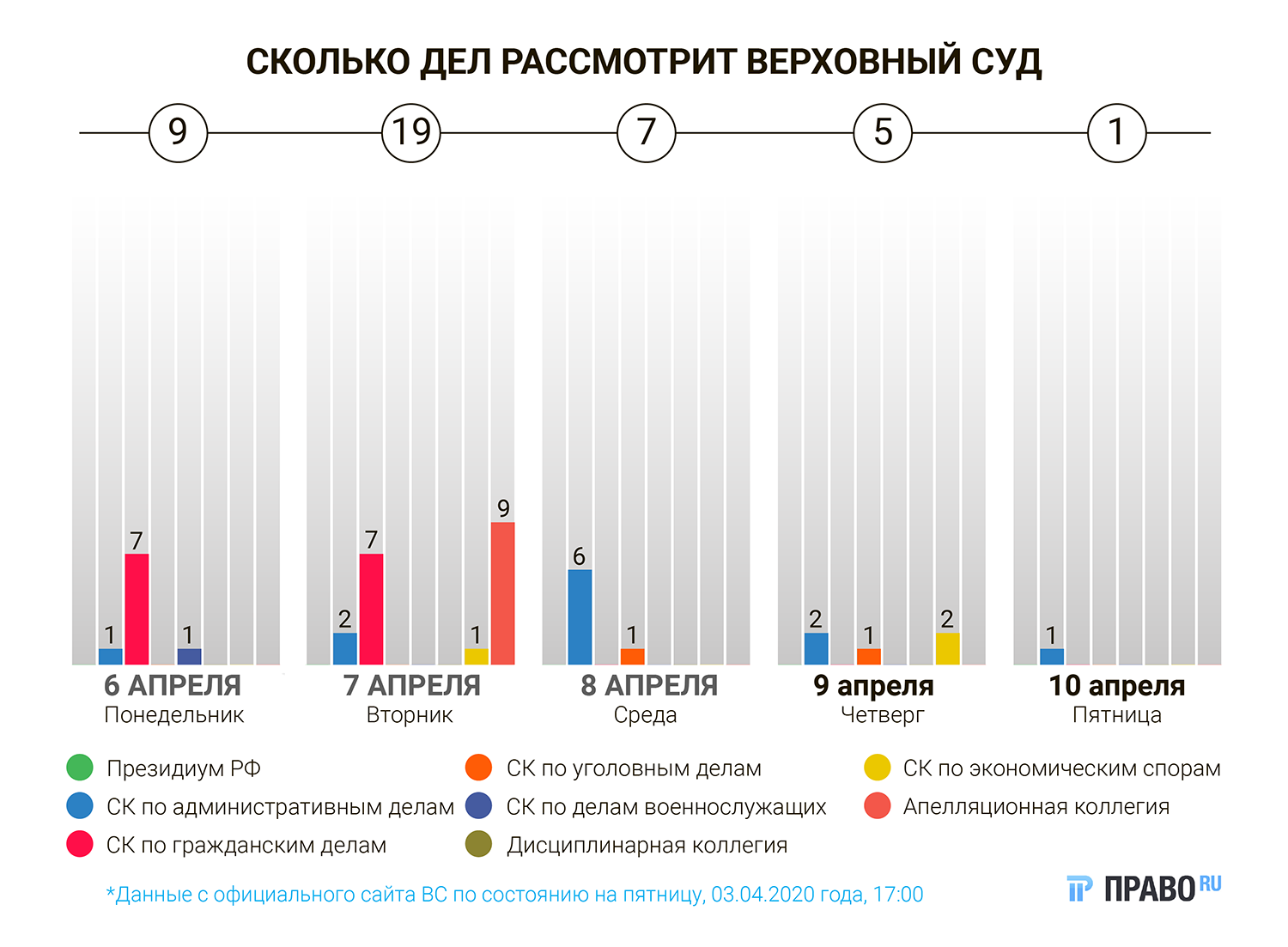 На следующей неделе Верховный суд рассмотрит 40 дел. Это примерно в три раза меньше, чем обычно, и отражает общую тенденцию – вся судебная система практически приостановила работу из-за нового коронавируса. Не рассматривает дел Президиум, в других коллегиях тоже мало разбирательств и много переносов. Экономколлегия разберет всего 3 жалобы из запланированных 11, остальные перенесены на конец апреля. Среди них есть такое: