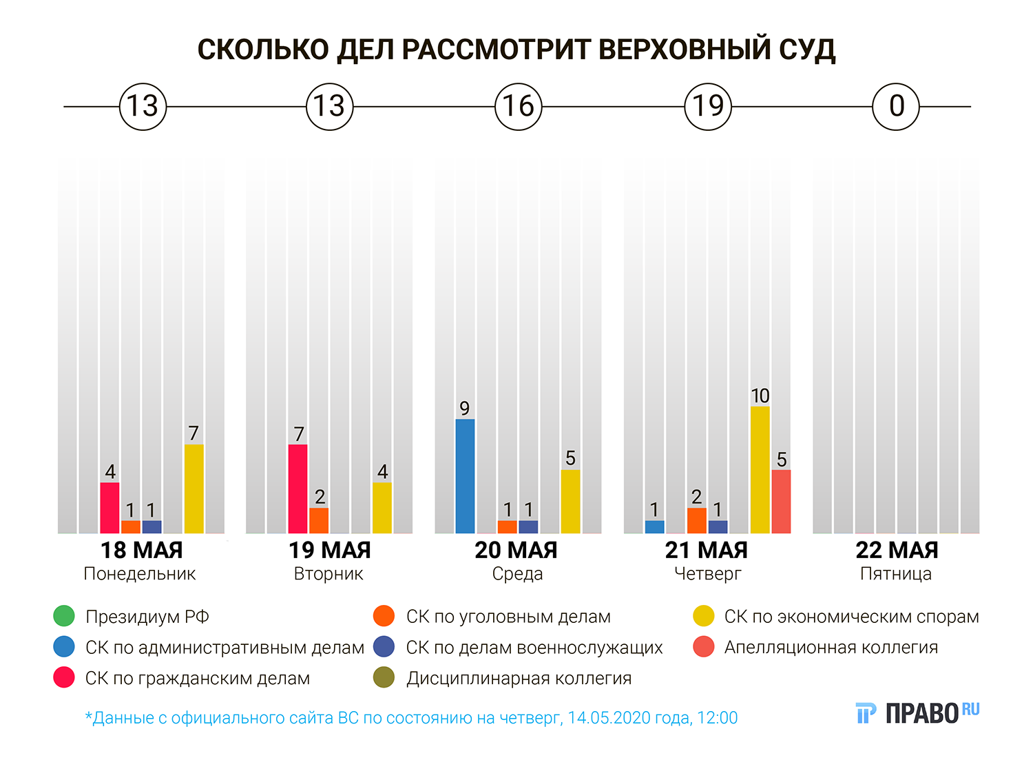 В гражданской коллегии запланировано 11 разбирательств, в их числе: