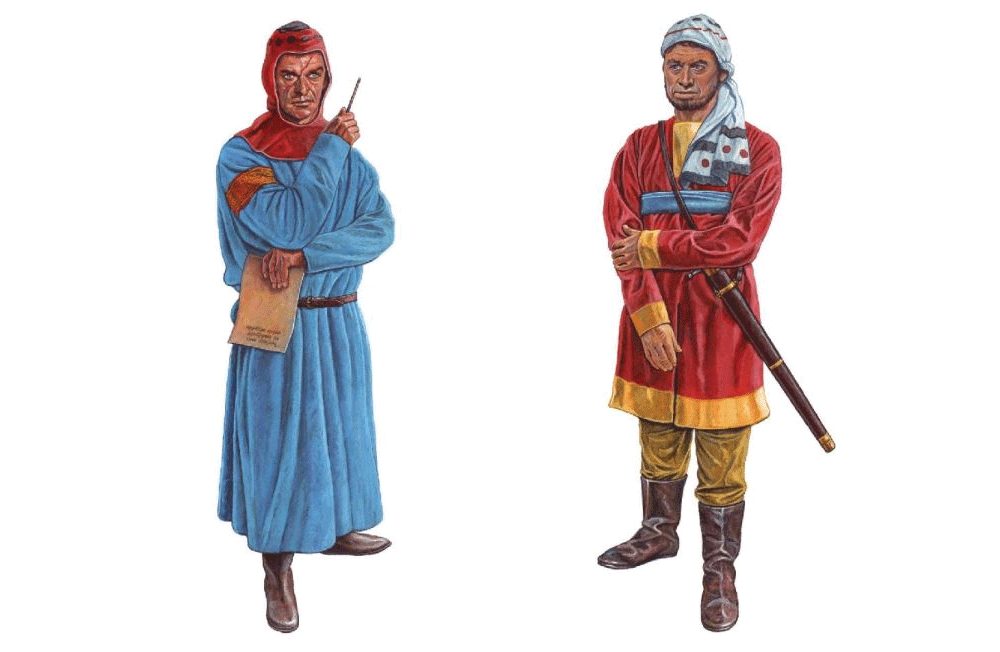 К десятому веку в Восточной Римской империи уже сложилась развитая бюрократия. Градоначальник столицы — Константинополя — считался правой рукой императора, и среди его особых регалий была фелонь с капюшоном. Фелонь — одежда типа мантии, которая сейчас используется только в богослужебных целях в православной церкви. К десятому веку она стала и одним из элементов облачения судьи — символически фелонь с капюшоном означала, что судья действует от имени главы города. По аналогичным причинам капюшон носили и виглы - члены городской и императорской стражи, которые, в числе прочего, охраняли подсудимых в ходе процесса. Для охраны женщин-нарушителей даже создавались женские «батальоны» охраны, и в числе их регалий тоже был капюшон.