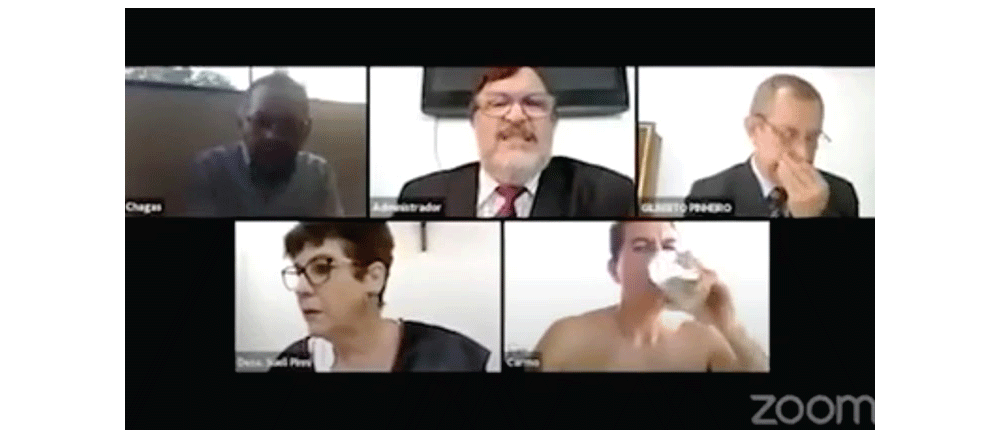 Некоторые казусы во время пандемии происходят в программах для видеосвязи. Судья Кармо Антонио де Суза из Бразилии участвовал в видеозвонке с другими судьями Суда штата Амапы, где все работают из дома из-за пандемии коронавируса. После того, как включился Zoom, де Суза предстал перед другими коллегами-судьями без рубашки, потягивающим какой-то напиток. Правда, через некоторое время он вернулся к экрану, уже одетый в обычную рубашку и галстук. Суд Амапы не оставил этот случай без внимания. Он провёл специальное заседание и пришел к выводу, что в момент первого появления на экране судья не знал о том, что его оборудование включено. Суд отклонил утверждение о том, что де Суза намеренно предстал в таком виде на сеансе судей.