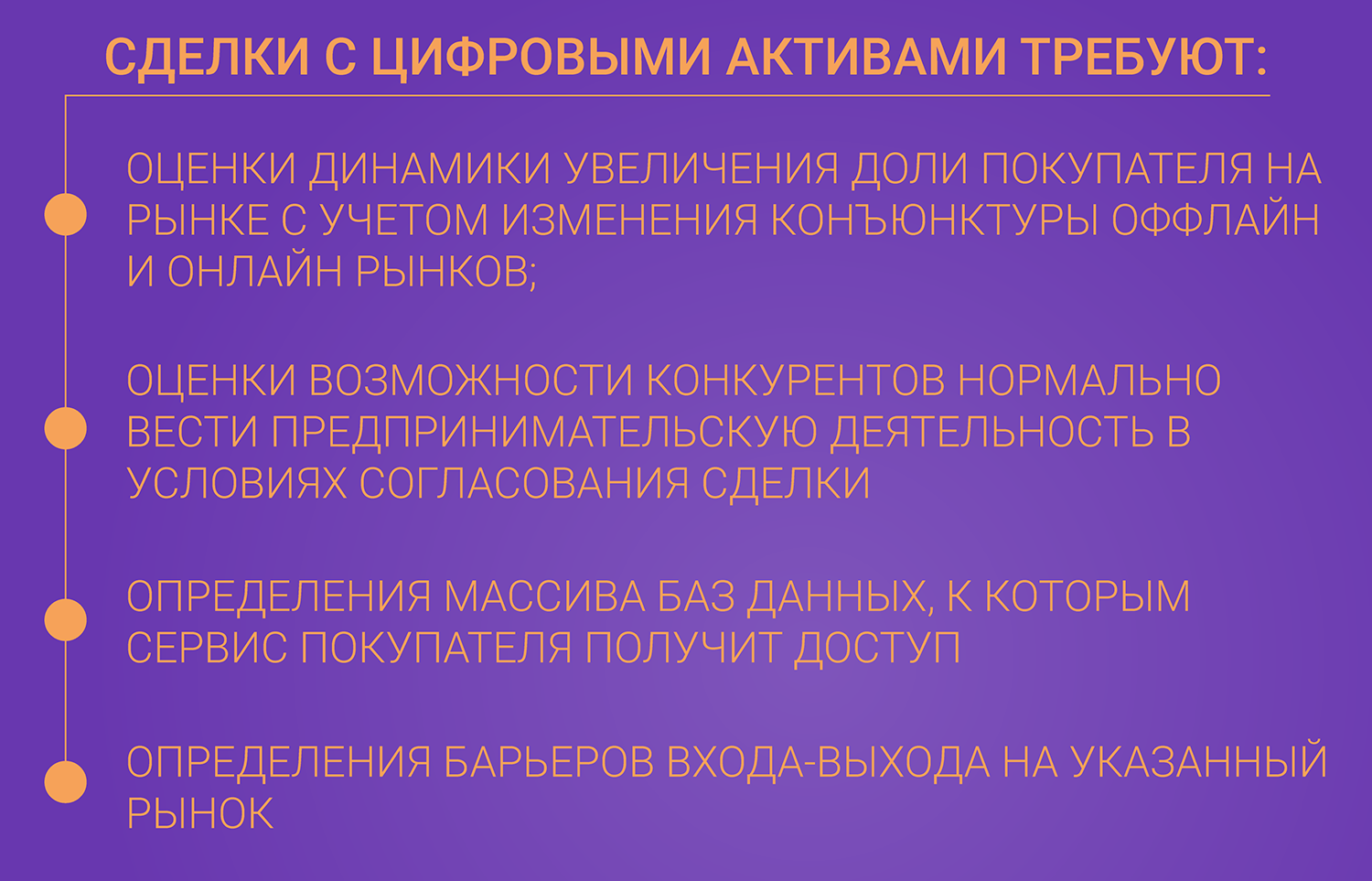 Во всех случаях регулятору было необходимо оценить эффект для конкуренции в части функционирования цифровых платформ (агрегаторов) и объединения цифровых технологий.