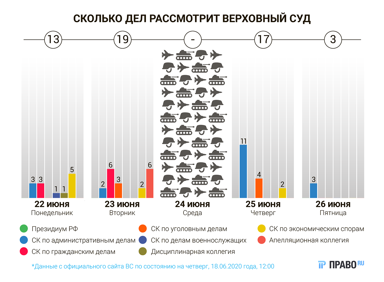 Президиум ВС, который всегда рассматривает дела по средам, на этой неделе заседать не будет — из-за военного парада и объявленного выходного дня.