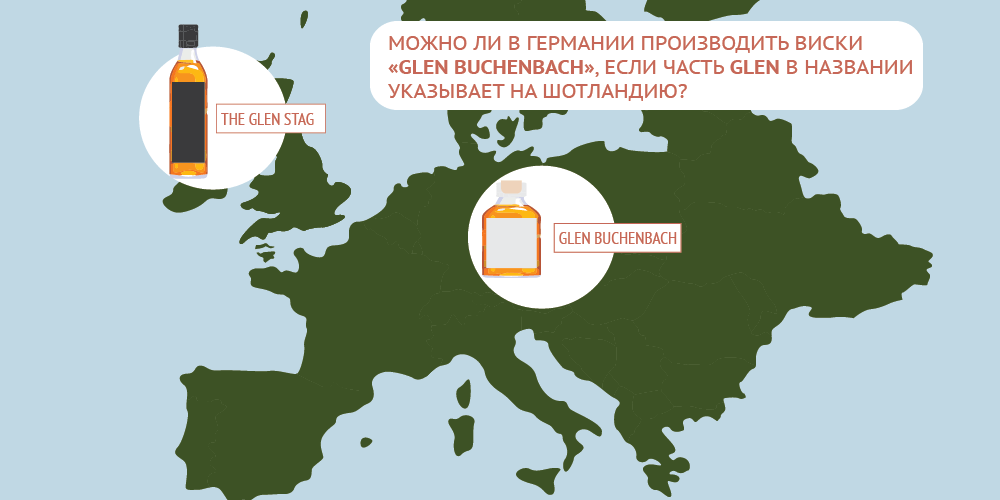 Пример разбирательства на эту тему – дело № C‑44/17, которое в 2017–2018 годах разбирал Суд ЕС. Некий Михаэль Кротц производил виски под названием Glen Buchenbach. В переводе это означает «Долина Бухенбах» – местность в немецкой Швабии, где Кротц и делал свой напиток. Но слово glen обычно используют шотландцы. На это и обратила внимание Ассоциация производителей шотландского виски. Они подали иск против Кротца. В заявлении ассоциация указала, что «термин glen широко используется в Шотландии вместо слова «долина», в том числе как элемент товарного знака в названии шотландского виски. Он вызывает у населения ассоциации с Шотландией и шотландским виски, хотя на этикетке и указано, что выпускаемая продукция немецкого происхождения».