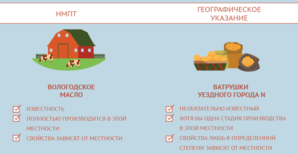 27 июля вступили в силу изменения в ГК. Появилось новое понятие – географическое указание (ГУ), которое устанавливает связь продукции с её географическим происхождением. Географическое указание можно спутать с другим похожим объектом – наименованием места происхождения товара (НМПТ). Например, «Нарзан» или «Вологодское масло». НМПТ означает, что продукт полностью производится в этой местности. Но в отличие от него, согласно п. 1 ст. 1516, для географического указания достаточно одной стадии производства товара на этой территории.