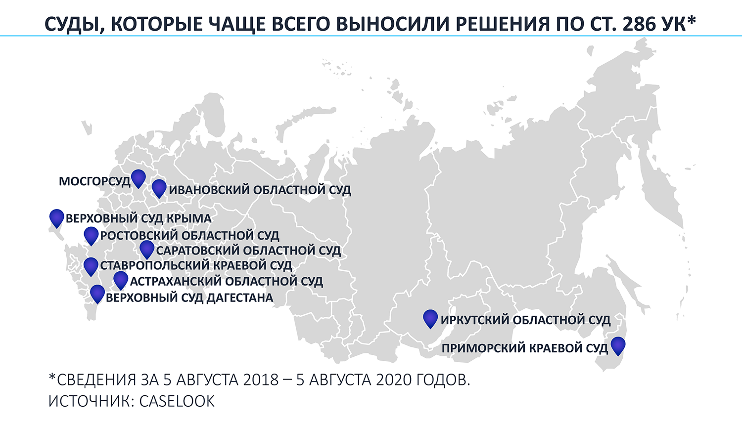 Обвинение по этой статье в целом часто предъявляют полицейским или сотрудникам других правоохранительных органов, говорит руководитель уголовной практики АБ «Павел Хлюстов и Партнеры» Алексей Гуров. По его словам, ст. 286 УК им нередко вменяют наряду со «взяточничеством» или «хищением».