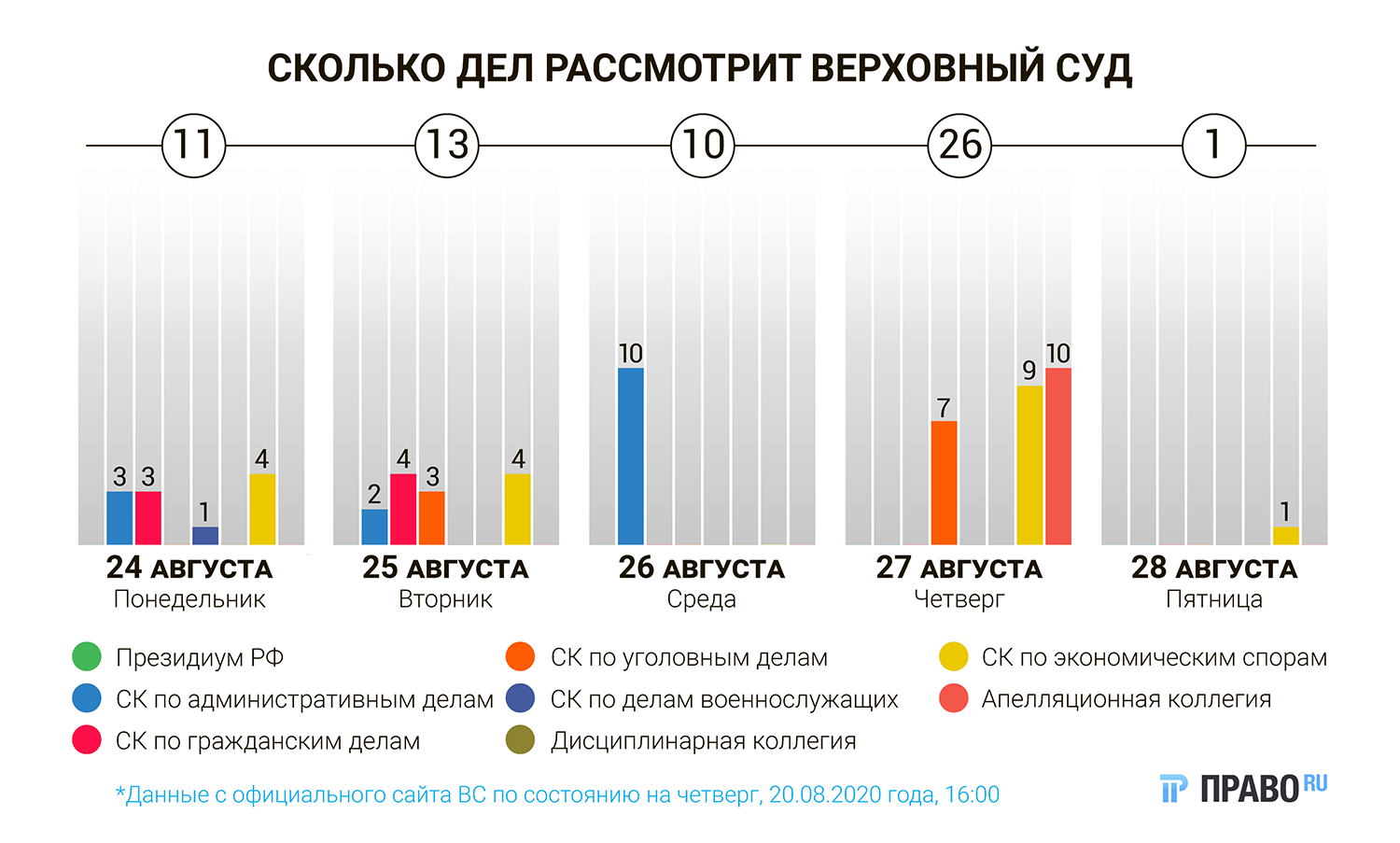 Наконец, семь дел рассмотрит коллегия по гражданским делам: