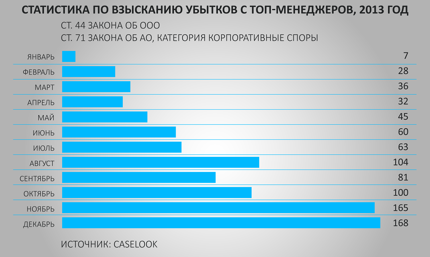 И если в начале 2013 года суды крайне редко и неохотно привлекали директоров к ответственности, то после практика стала разворачиваться в обратную сторону. Процент «удовлетворяемости» пошел вверх.