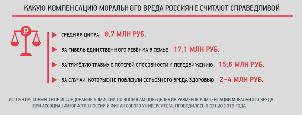 Сколько стоит жизнь самого близкого человека, возможность двигаться, временная потеря здоровья или свобода? На этот вопрос приходится отвечать судам в делах, где они определяют размер компенсации морального вреда. Единых ориентиров тут нет, и компенсации могут различаться в похожих делах. Например, двум людям, которые стали после ДТП инвалидами первой группы, присудили 400 000 руб. и 800 000 руб. компенсации в разных регионах. Как решают проблему судебная власть и юридическое сообщество, рассказываем в статье.