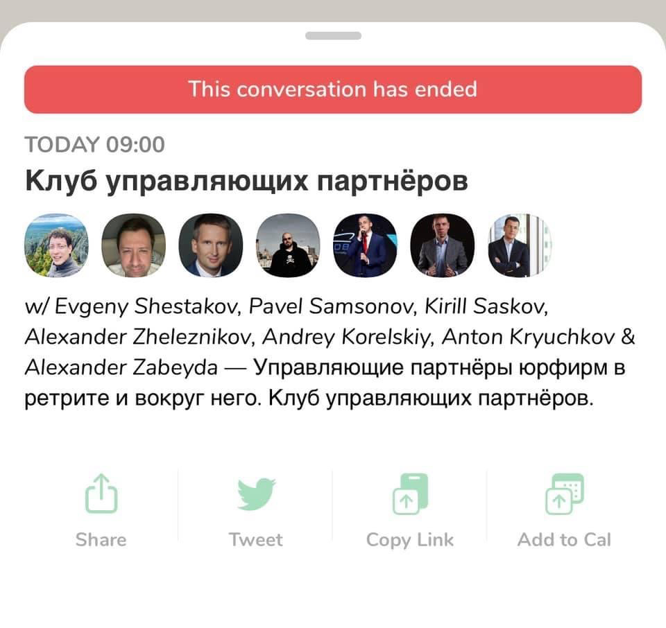 Одним из первых об удобстве Clubhouse для юристов на прошлой неделе в своем telegram-канале «99 франков без НДС» заговорил Церен Савгуров, директор по маркетингу КИАП . Привлекает минималистичный интерфейс и много крутых профессионалов из разных сфер (от основателей стартапов до IT-спецов), делится первыми впечатлениями Савгуров: «Все сбиваются в «комнаты» и постепенно аудитория разрастается до небольшой онлайн-конференции».